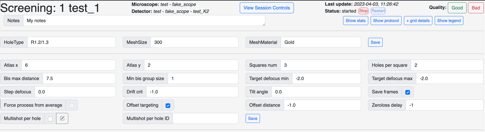 If the acquisition is in screening mode, the grid name will be prefexed by Screening:. If the number of hole per square is set to 0, the prefix will be Data Collection: