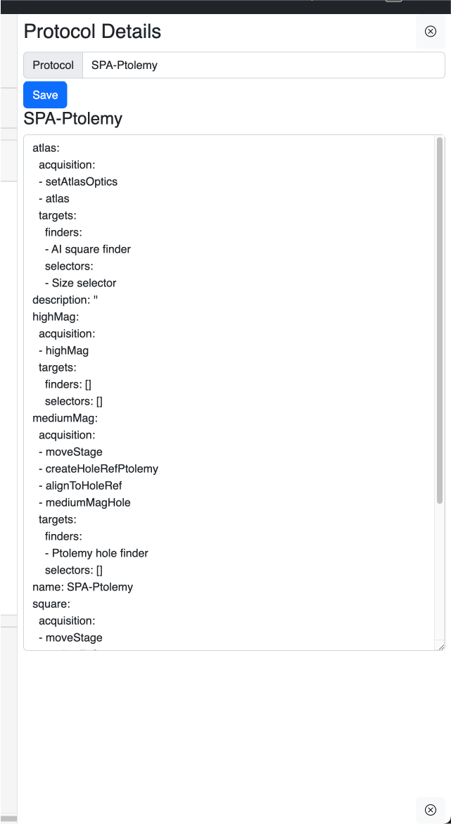 Will toggle the protocol sidebar and give details about the current protocol as well as the ability to change protocol.